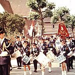 Hierdoor waren de woningen zeer betaalbaar. De eerste huizen werden in de periode 1976 t/m 1978 gebouwd. De volgende bouwfases werden in 1982 en 1984 afgerond. In totaal werden bijna 100 woningen aan de Mauritiussingel en Warande gerealiseerd. Ook werden 24 woningen voor senioren (bejaarden) gebouwd. Al met al een groots uitbreidingsproject dat ons dorp een nieuwe impuls gaf en liet uitgroeien tot een mooie gemeenschap met een rijk verenigingsleven en veel voorzieningen. Op de foto trekt de processie voor het eerst door de Mauritiussingel. Op de voorgrond een groep misdienaars die het beeld van de wenende Spaanse Madonna van kunstenaar Pablo Rueda meedragen: